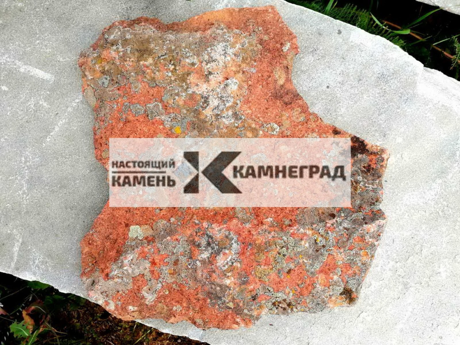 - Камень красный с лишайником