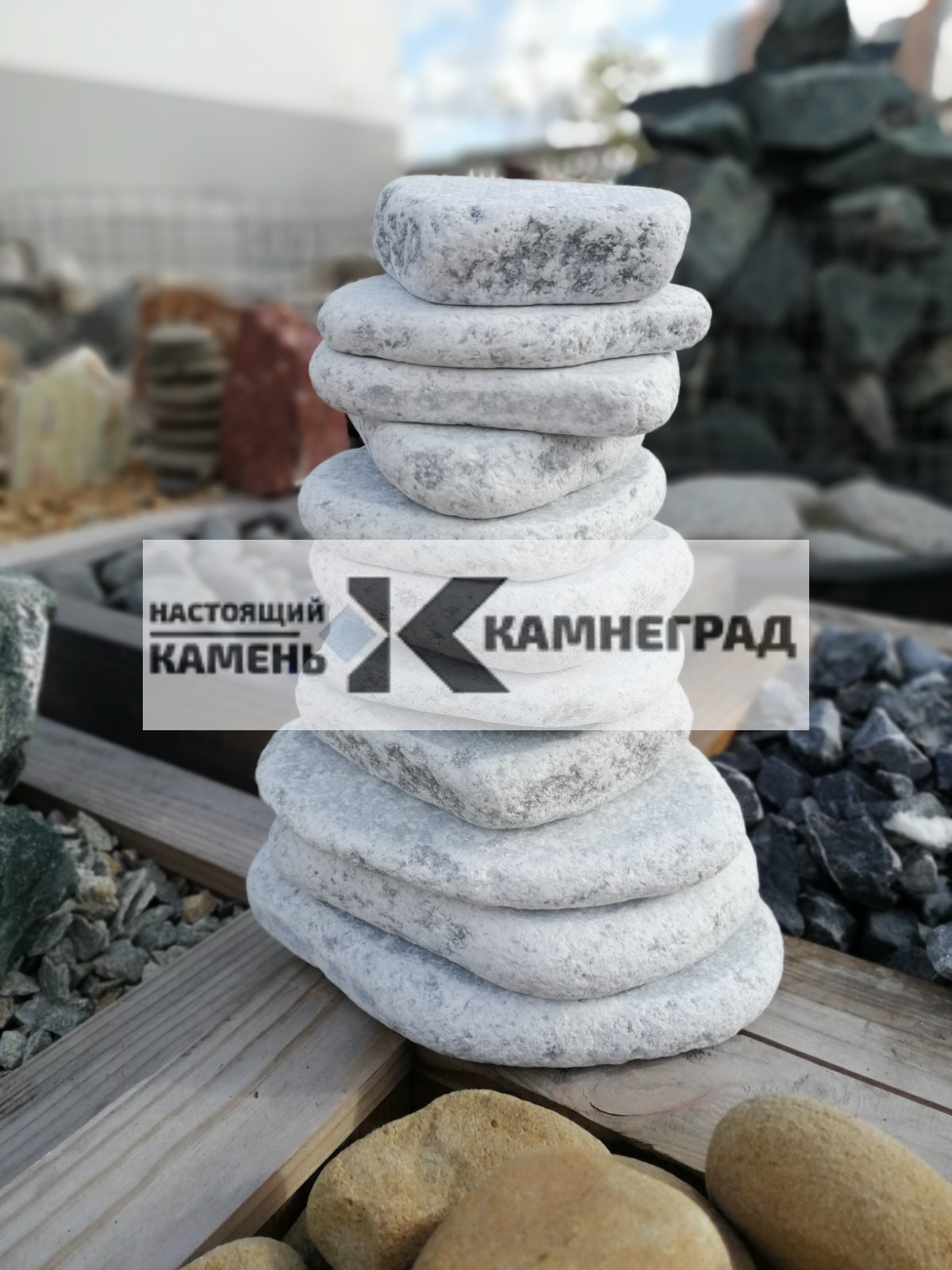 - Мрамор галтованный бело-голубой "Блинчики"