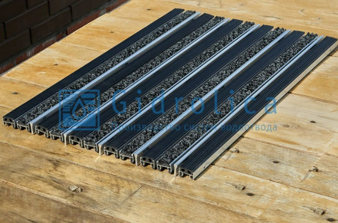- Придверная решетка Gidrolica Step - резина+текстиль+скребок 390х590мм