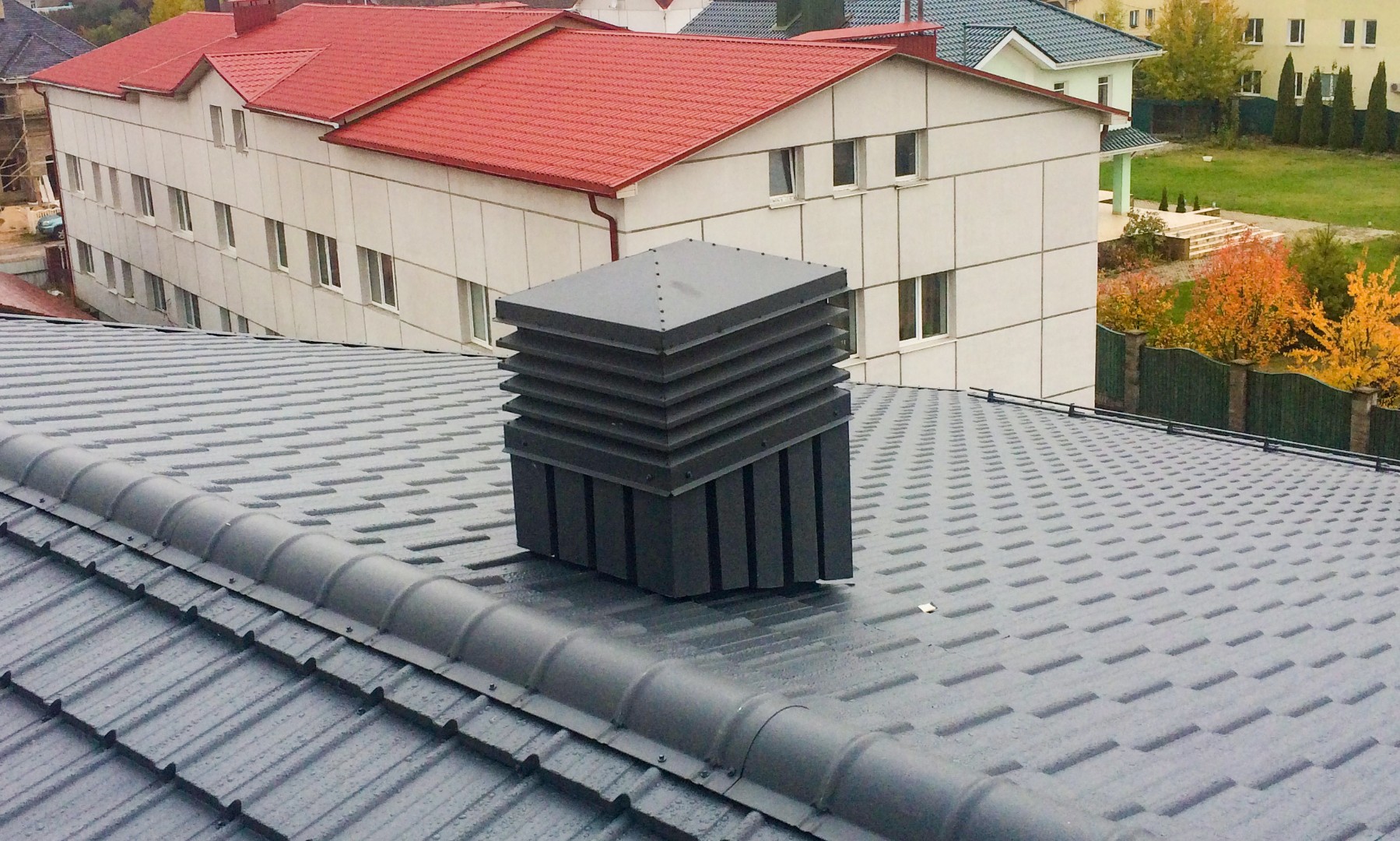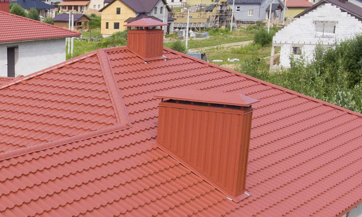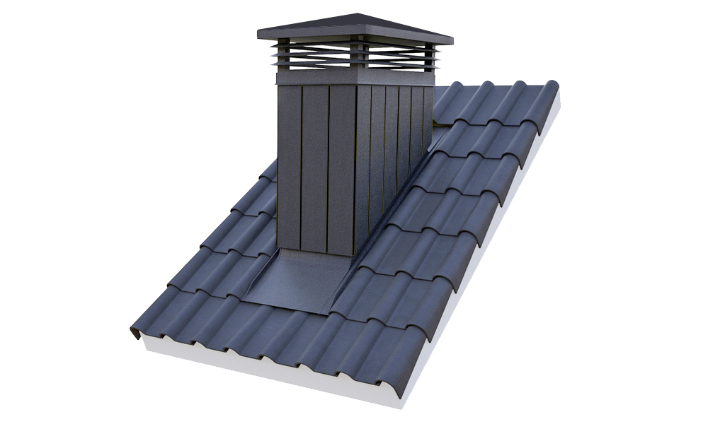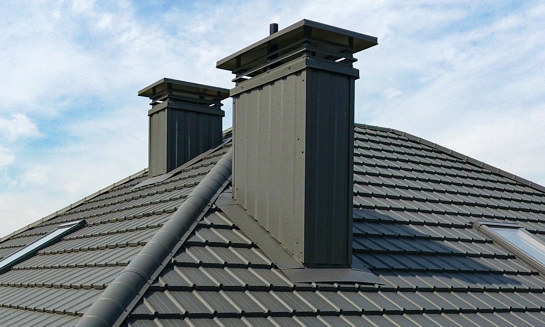 Обшивка дымохода или вентканала производится для его защиты от воздействия окружающей среды и придания крыше гармоничного законченного вида. Для обшивки могут применяться различные материалы, например, декоративный кирпич или фальц. Но наиболее удобное и надежное покрытие - из металлического профлиста или кассет.