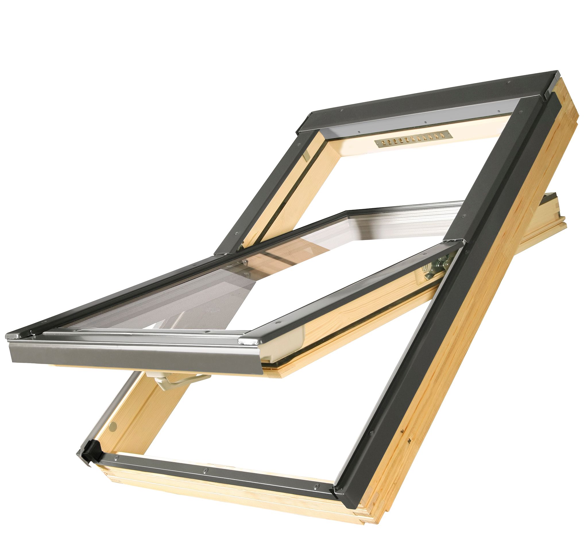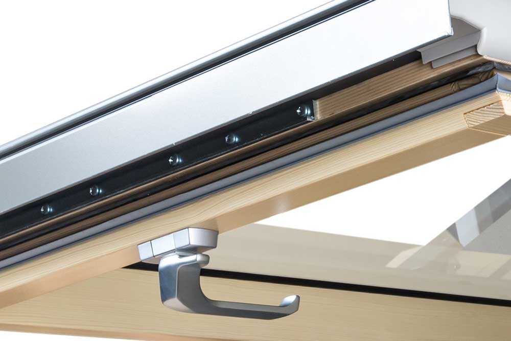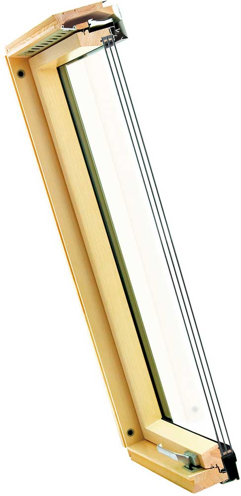 Модель окна FTS-V U4 со среднеповоротным открыванием – базовая модель окна для крыши c двухкамерным стеклопакетом и встроенным вентклапаном V10, что позволяет проветривать помещение даже при закрытом окне. Благодаря фрикционным петлям, располагающимся в центральной части оконной коробки, створку окна можно оставлять в позиции наклона, а также поворачивать вокруг оси на 180°, что делает удобным мытье внешнего стекла. Стальная конструкция поворотно-откидных петель с пластиковыми направляющими не только смягчает ход оконной створки, но и придает необходимую прочность и жесткость в условиях ветровых и снеговых нагрузок.