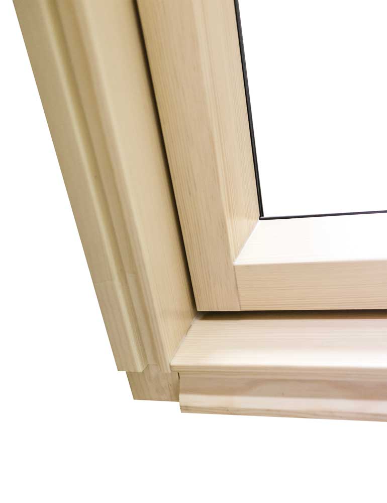 - Окна FTS-V U2 (V22) изготовлены из древесины сосны высшего сорта без сучков, пропитанной антисептиком в вакуумной камере и покрытой 2 слоями полиакрилового лака на водной основе;