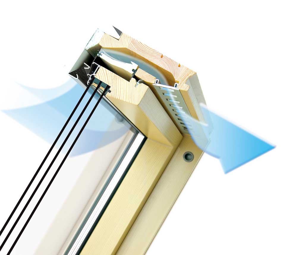 - Модель окна FTS-V U2 (V22) оснащена вентиляционным клапаном V22 с пропускной способностью до 31м3/ч;