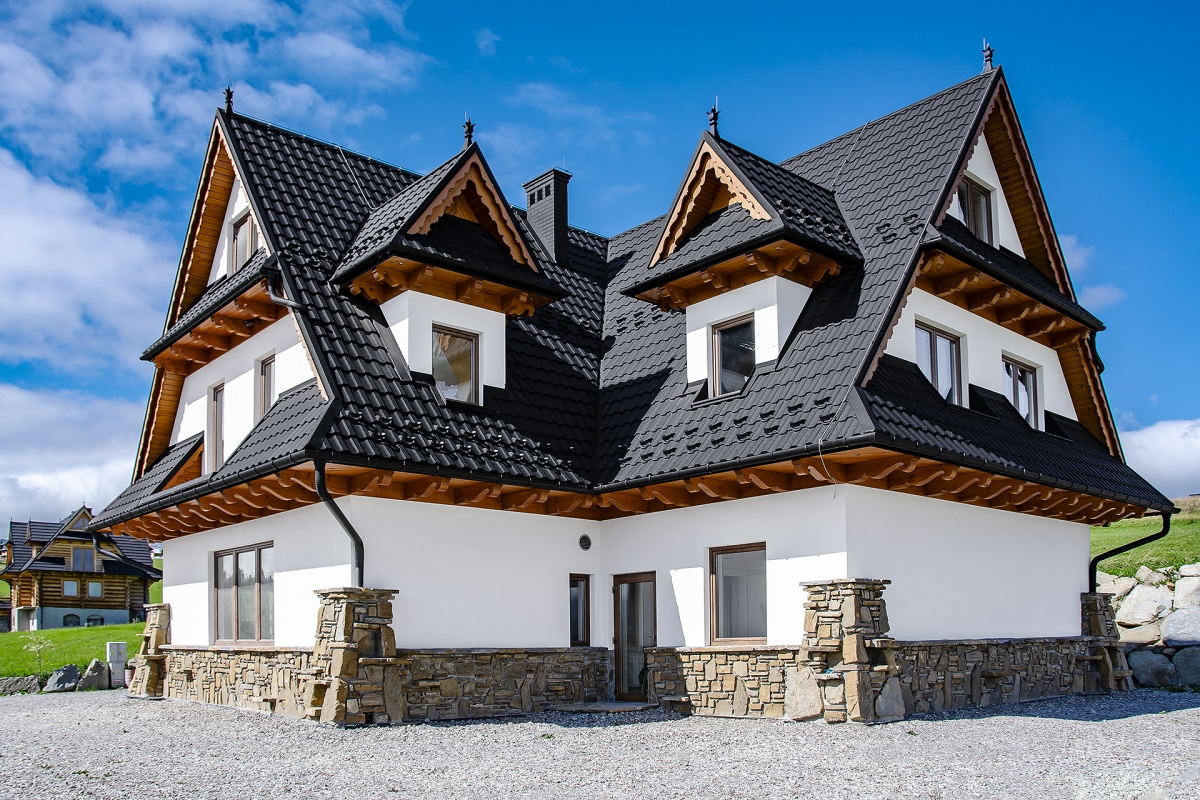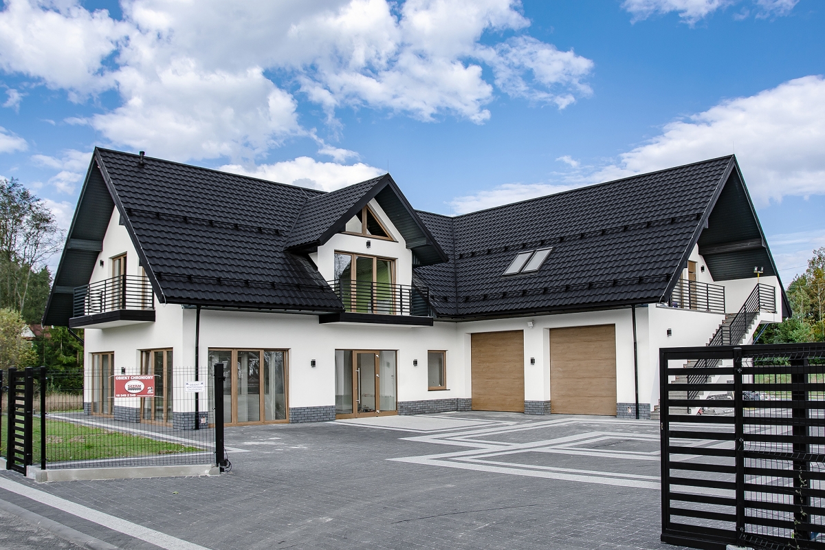 Модульная металлочерепица Германия - продукт польской фирмы Blachotrapez. Выделяется необычной формой волны, а также большим выбором покрытий и цветов.