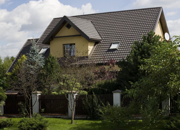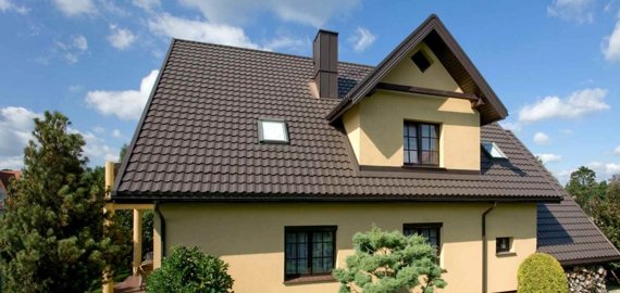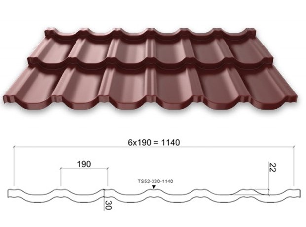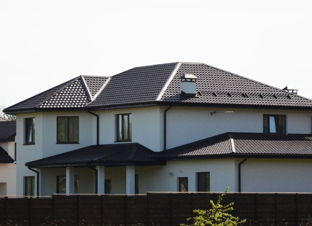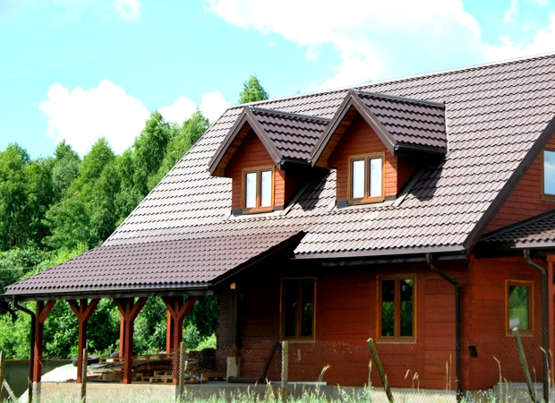 Модульная черепица финского производства. Использование специального загиба в нижней стороне листа исключает повреждение модулей. Также, это увеличивает жесткость, поэтому, нет необходимости в специальных оверстиях для закрепления листов друг с другом.