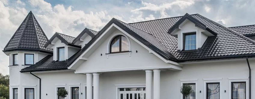 - Эстетичный вид. Черепица подойдет для обустройства кровли частного дома, дачи и коммерческого здания.