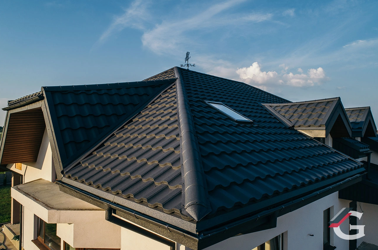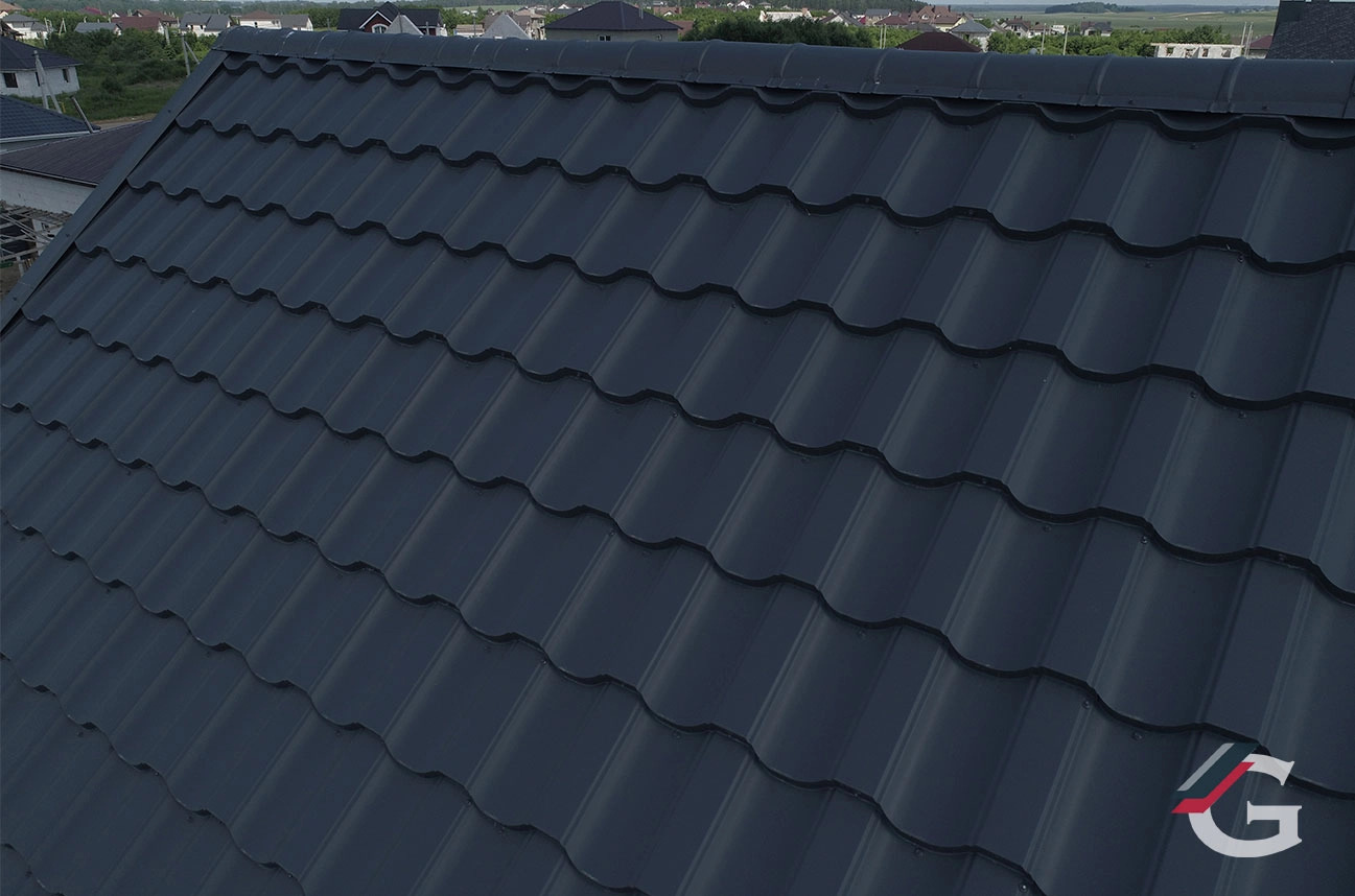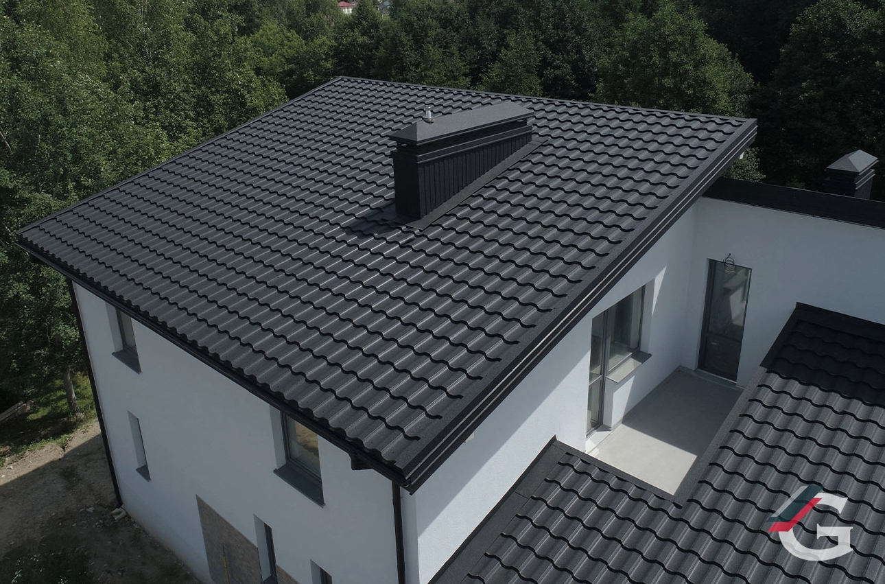 Это новое исключительное видение металлочерепицы, которая имеет оригинальную форму из четырех изгибов (ребер жёсткости), придающую дому индивидуальность, гармоничный и дорогой вид.