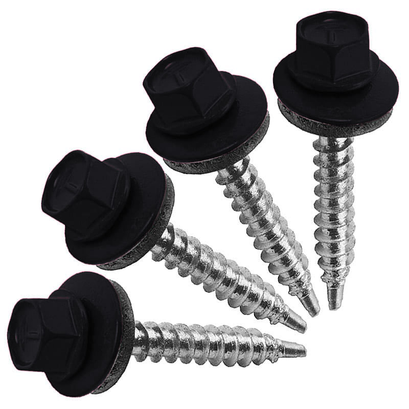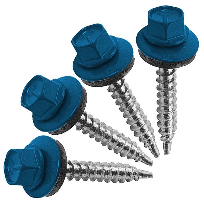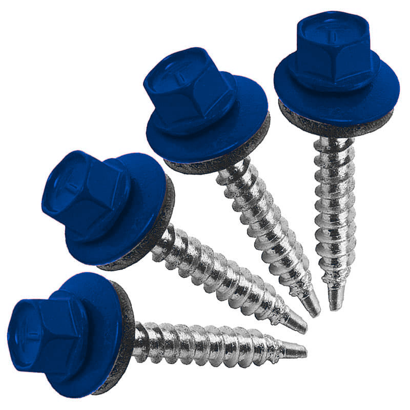 Применяются для фиксации верхних кровельных планок к деревянному бруску обрешетки. Изготовлен из стали, покрыт цинковым слоем во избежание появления ржавчины и коррозии. Имеет головку в форме шестигранника с резиновой прокладкой, обеспечивающей гидроизоляцию конструкции. Покрыт цветной эмалью. Наконечник представляет собой сверло, упрощающее процесс монтажа. Устанавливается при помощи дрели со специальной насадкой соответствующей шестигранной головке 7,78 - 8 мм. Диаметр сверла 4,8 мм, длина 70 мм.