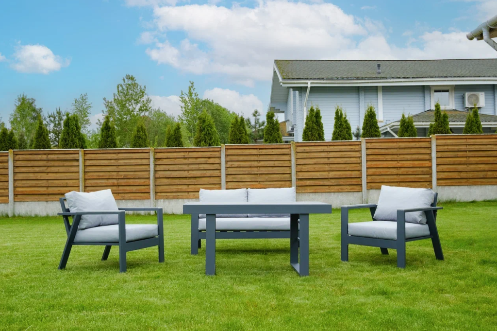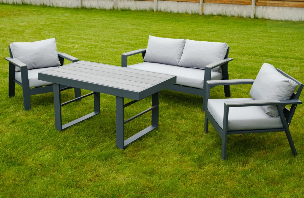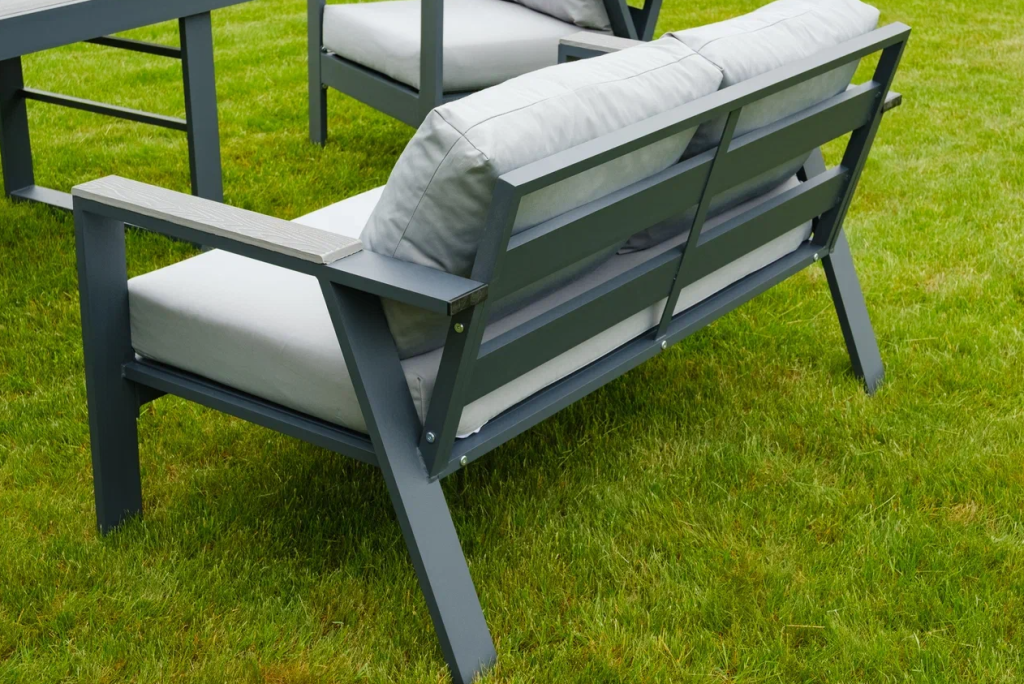Садовая мебель из алюминиевых профилей по индивидуальному заказу, крашеную в цвет по RAL, укомплектованную мягкими подушками.