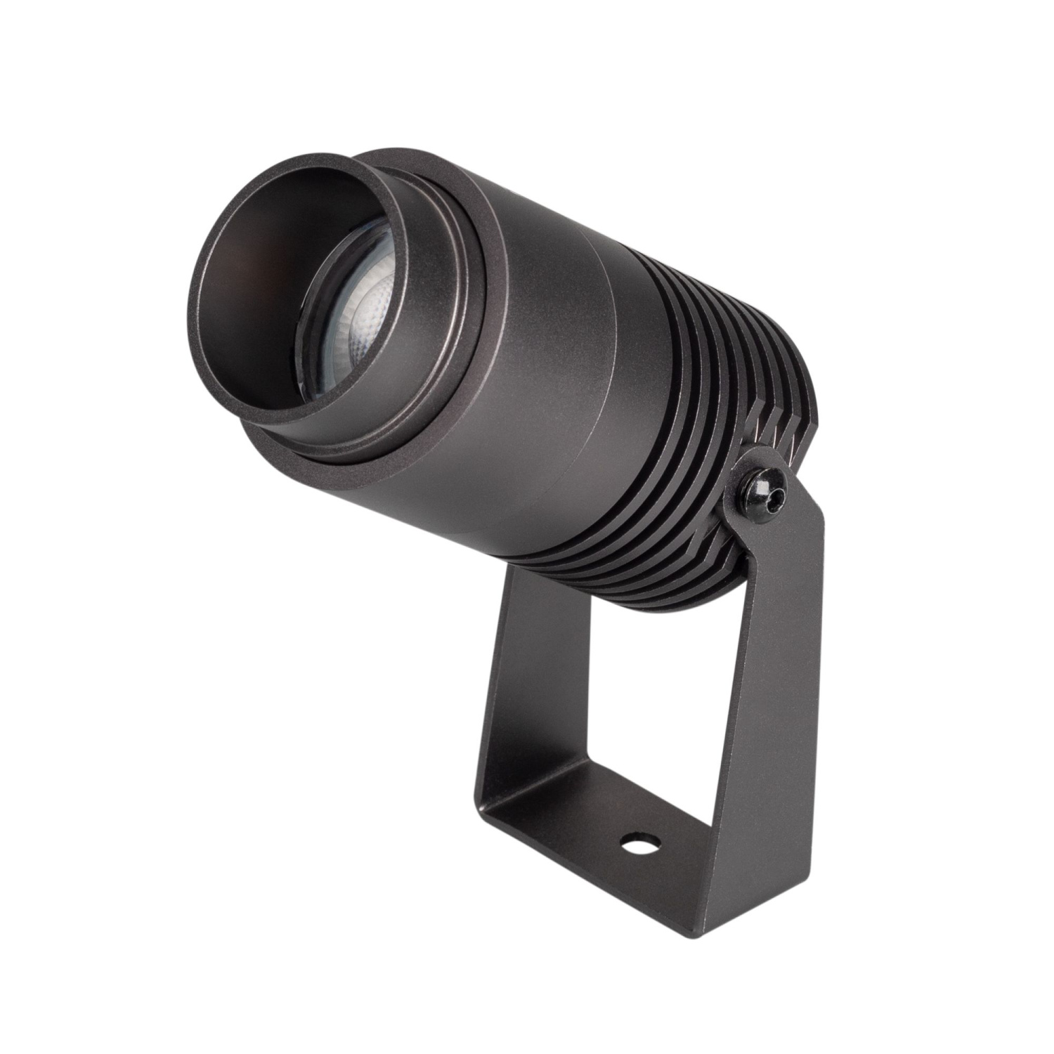 Уличный светодиодный прожектор ALT-RAY-ZOOM-R52-8W Day4000 (DG, 10-40 deg, 230V) мощностью 8 Вт дневного цвета свечения (4000 К) предназначен для организации локального освещения элементов фасадов зданий и сооружений, малых архитектурных форм, деревьев и зеленых насаждений. Поворотная конструкция корпуса позволяет мгновенно регулировать направление света в вертикальной плоскости в диапазоне 135°. Изменяемый угол излучения 10-40° и световой поток 240-420 лм дает возможность решать задачу точечного освещения объектов. Ударопрочный корпус Ø52хН103 мм темно-серого цвета выполнен из алюминия с устойчивым анодно-оксидным покрытием. Оптический блок закрыт прочным экраном из закаленного стекла толщиной 3мм. Степень пылевлагозащиты светильника IP67 рассчитана на длительное использование на открытом воздухе, обеспечивая надежную работу в неблагоприятных условиях. Встроенный драйвер позволяет безопасно и быстро подключить светильник к сети 230В, а для удобства монтажа в комплект входит провод длиной 1м. Возможна установка в грунт или на поверхность при помощи дополнительных аксессуаров — основания-пики или круглого основания (приобретаются отдельно)