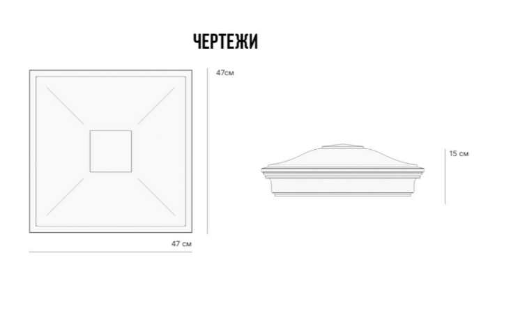 Простота установки: Благодаря стандартной посадке 385х385, колпак легко устанавливается на любой подходящий элемент.