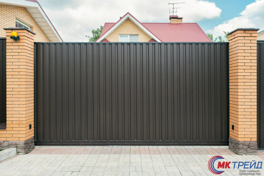 Откатные ворота — один из самых удобных и функциональных вариантов для въезда на территорию. Основное их преимущество — экономия места на участке.