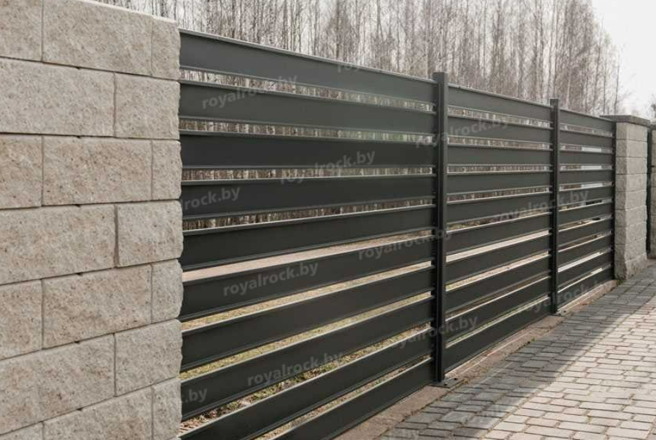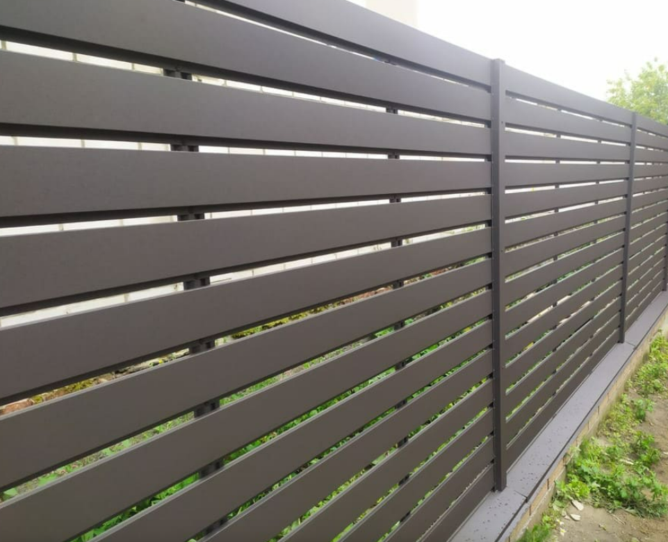 Ламели изготавливаются различной ширины от 20 до 120 мм и могут быть окрашены в любой цвет по RAL или иметь принты «под дерево». Богатая вариативность ширины, цвета, текстур панелей и расстояния между ними позволяет создать большое множество уникальных комбинаций дизайна забора.