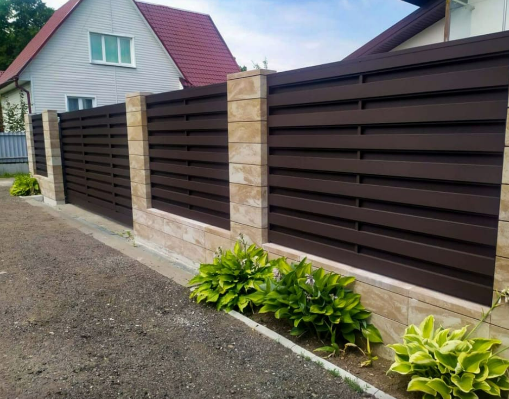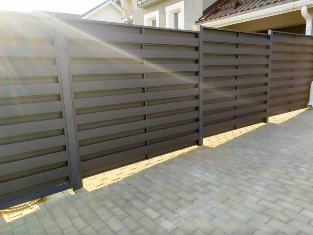 При этом за счет сохранения зазоров между ламелями, забор с таким заполнением не препятствует движению воздуха.