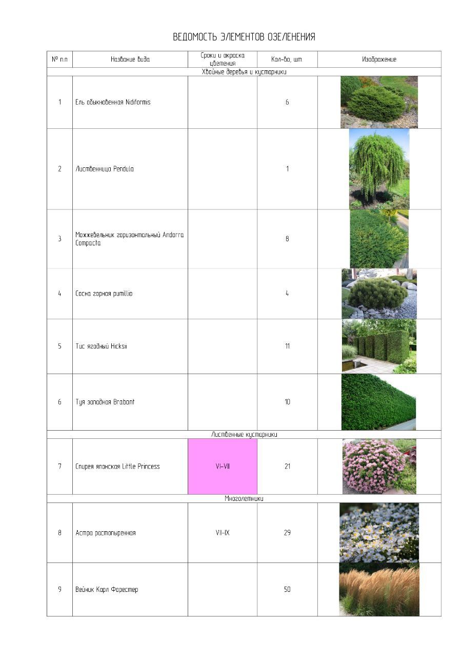 План озеленения показывает места расположения растительности.