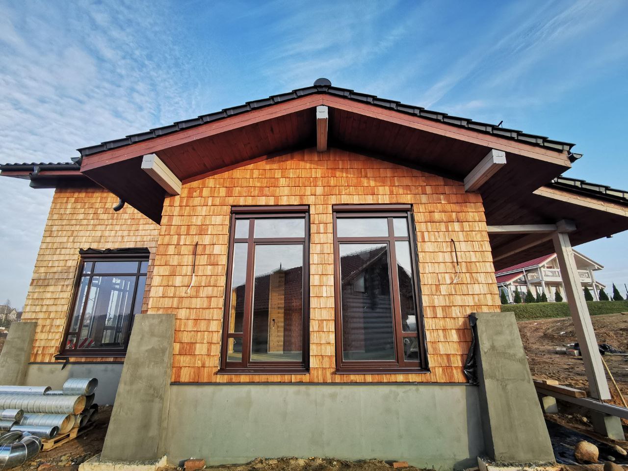 - Эстетичность. Деревянные оконные блоки и входные группы придадут зданию привлекательный вид, дополнят его архитектурный облик и создадут в помещениях уютную комфортную обстановку.