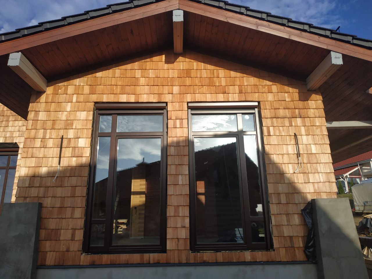 - Откосы. Это важные элементы, которые придают окнам завершенный вид, защищают монтажную пену от внешних воздействий и предотвращают утечки тепла. Мы можем сделать откосы из МДФ любой ширины в тон деревянным рамам, благодаря чему конструкция будет смотреться завершенной.